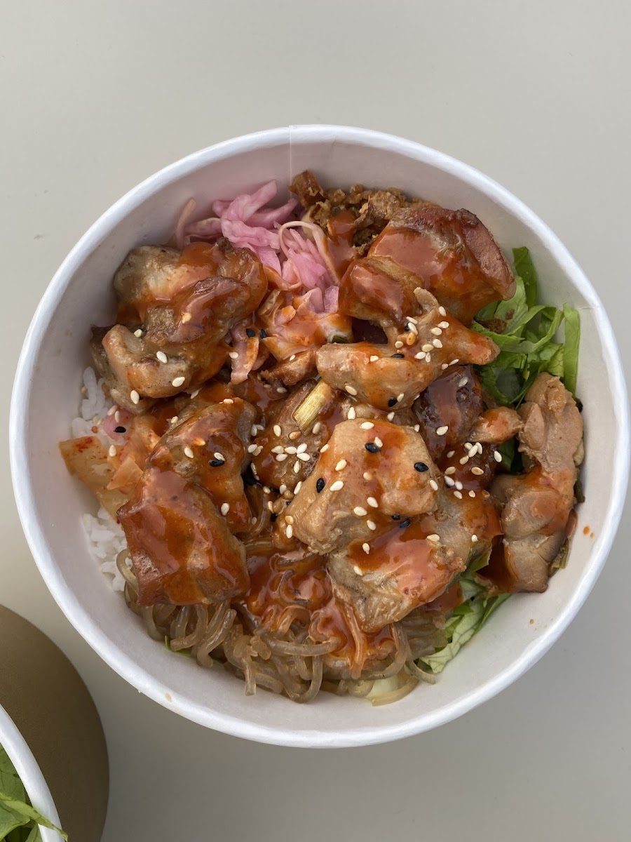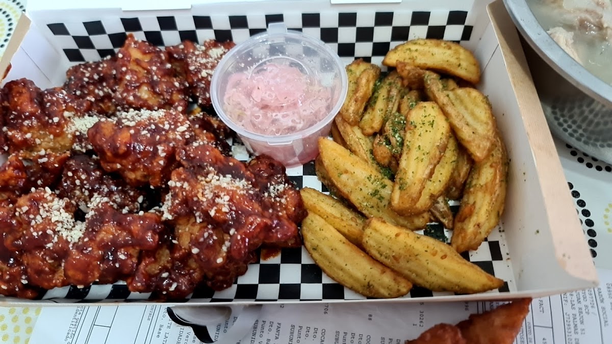 Absolute perfection!! The best Korean Fried Chicken I ever had. No seating available, but just grab this delicious chicken and walk 30 seconds to the beach promenade where there's free seating. Fantastic